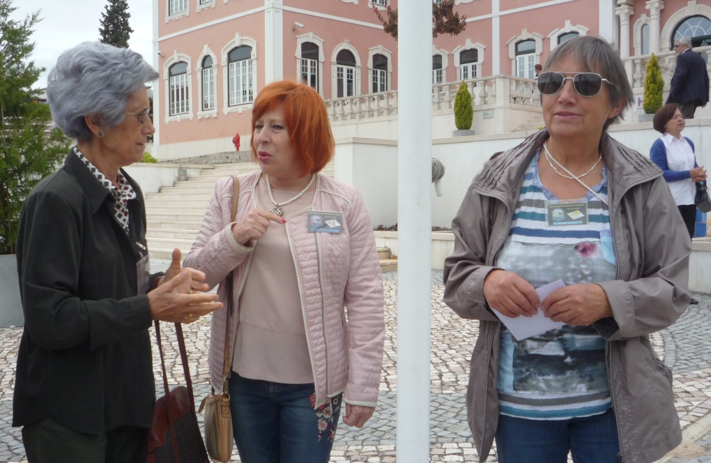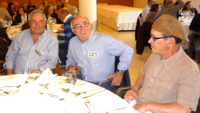 Finalmente, o pessoal ocupou as mesas para o almoço, cada uma delas com 10 participantes. A Maria Arminda optou por se manter junto dos companheiros de viagem - aqui com o Helder Valério Sousa e a Maria de Lurdes Canhão (tudo muito setubalense...).
